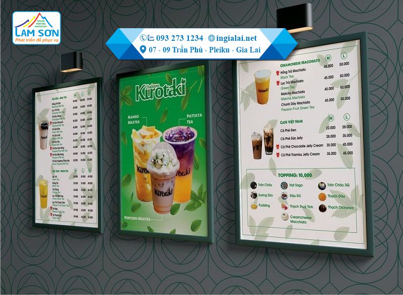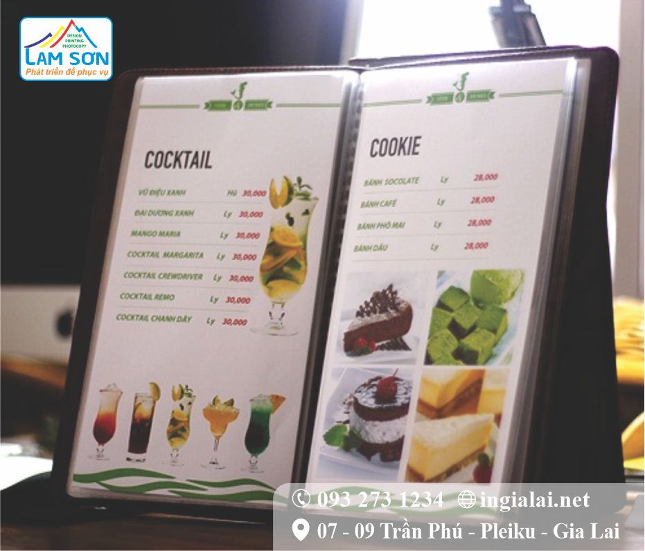 • Menu là thứ không thể thiếu cho quán cà phê, quán nhậu, quán trà sữa….vì thế dịch vụ thiết kế, in ấn menu chất lượng, giá rẻ ở Gia Lai không ngừng phát triển.