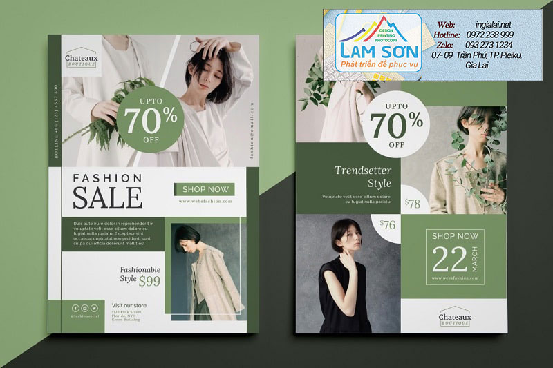 - Hoặc bạn ở Pleiku, Gia Lai hãy đến ngay cửa hàng in Photocopy Lam Sơn, địa chỉ 07 - 09 Trần Phú - Pleiku, Gia Lai để chúng tôi tư vấn thiết kế tờ rơi giá rẻ, giá tốt nhất cho các bạn